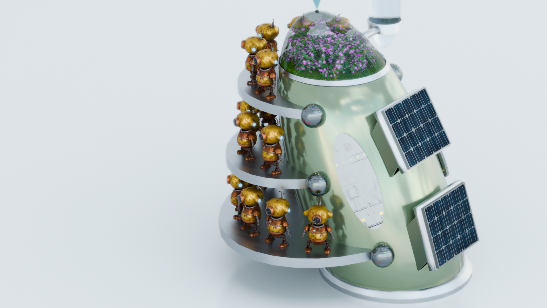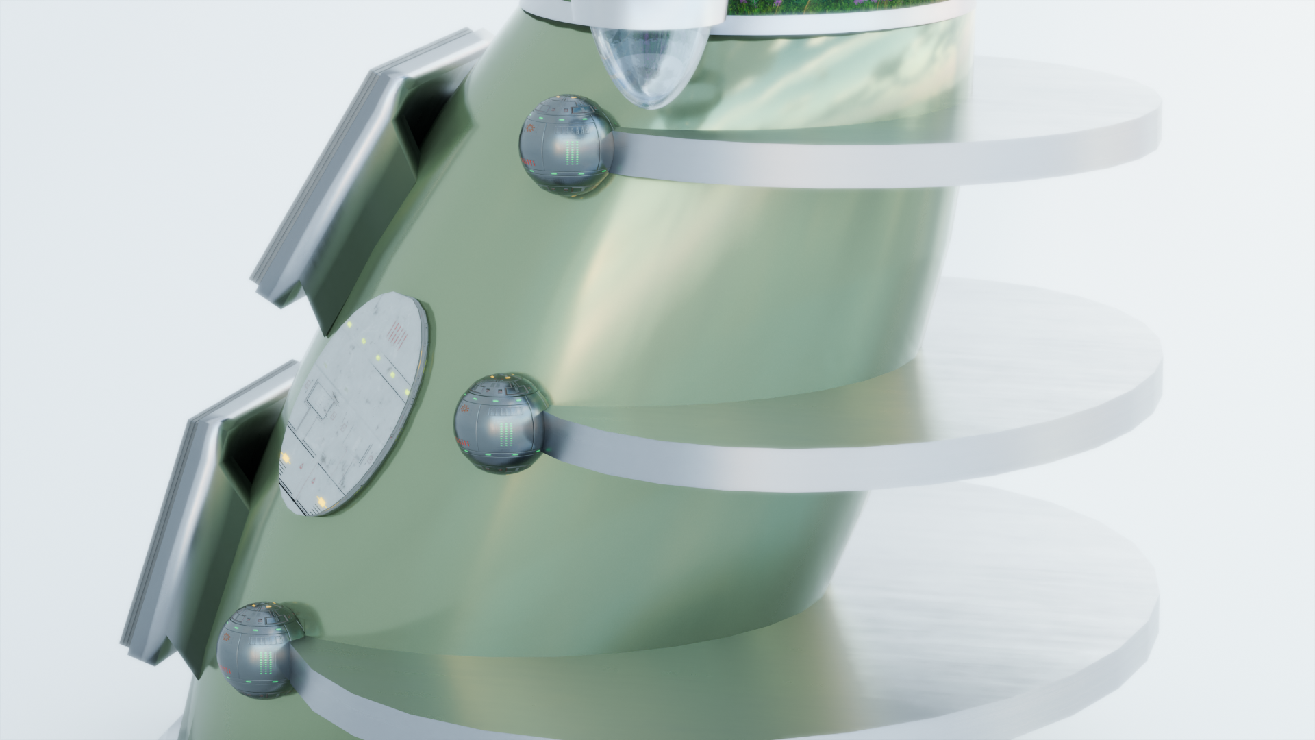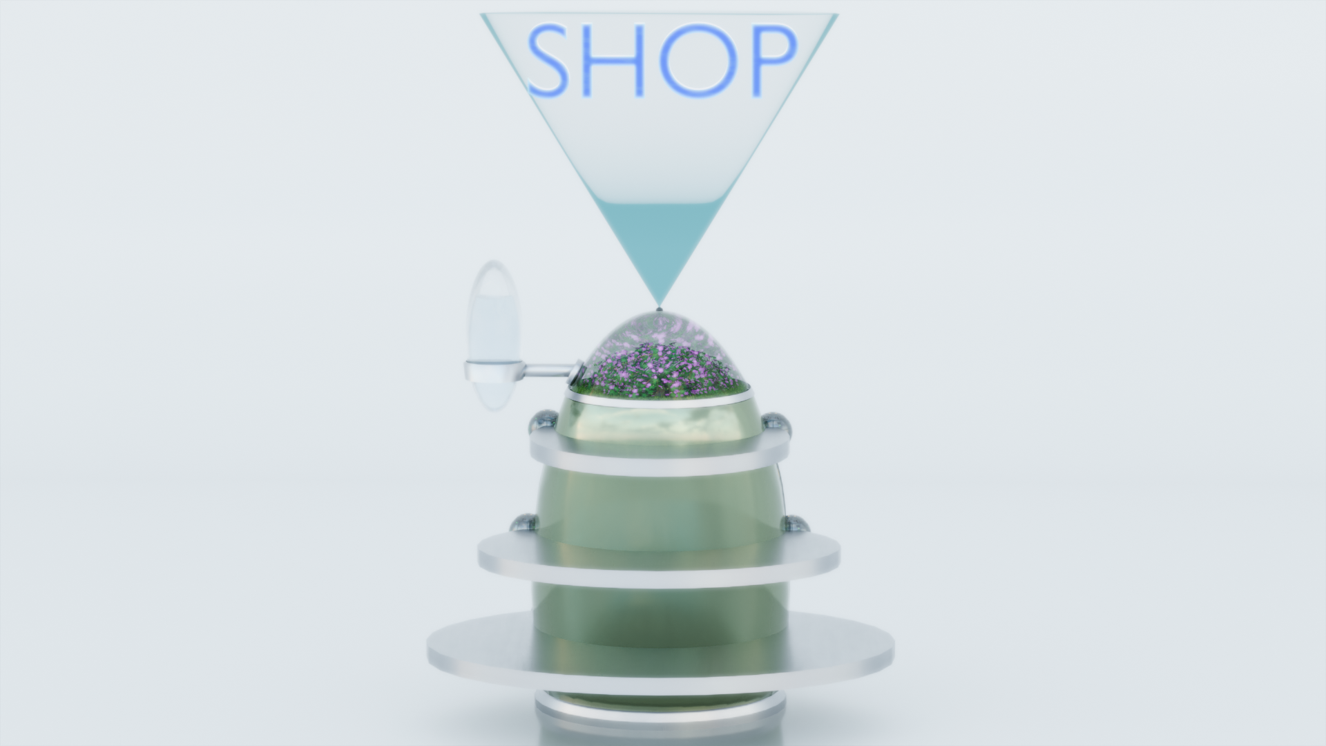 From thumbnail sketches to a fully rendered model, I designed a futuristic-themed solarpunk retail kiosk.
